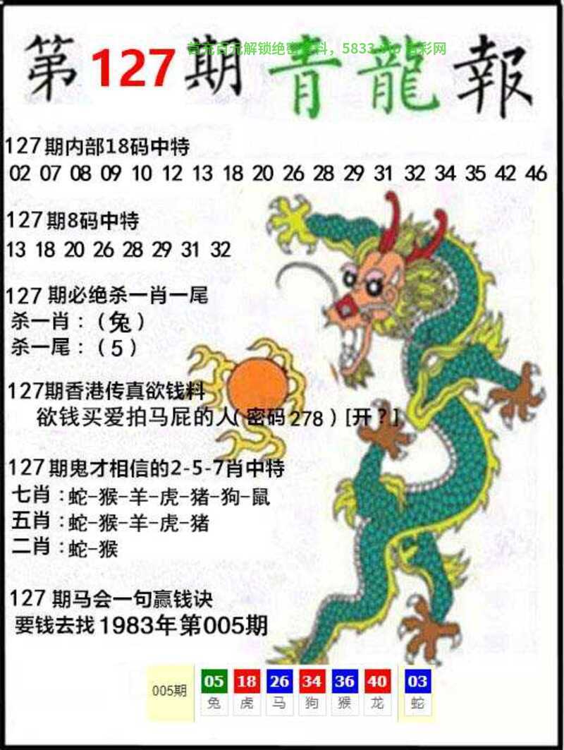 | 127期: 27333港彩必發二十年准确95% |